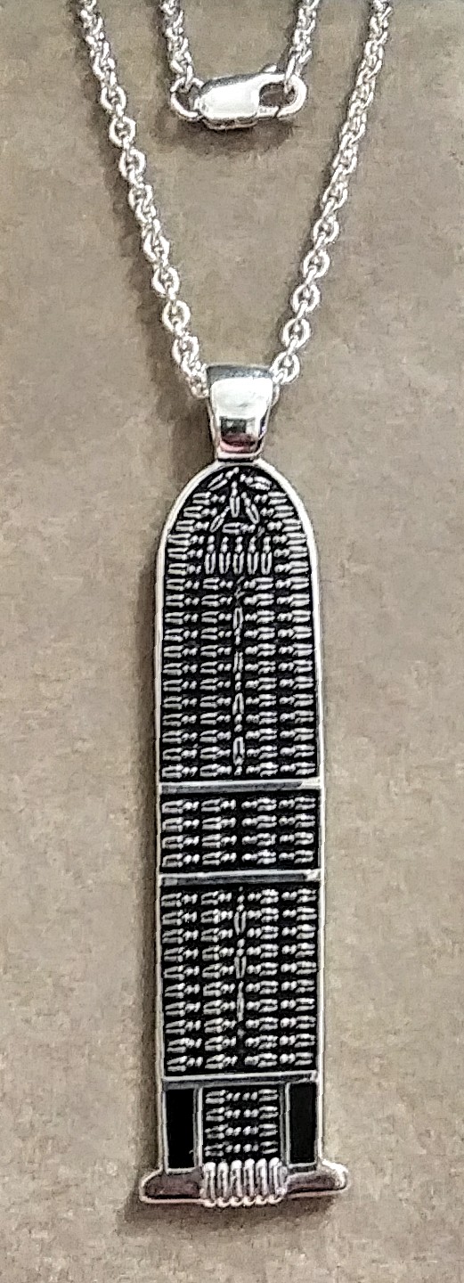 Designed by VERASH. Cartouche is cast in sterling silver, [optional yellow gold (14), or white gold (14)] then hand finished with an antique background plus a 20″ long sterling silver heavy duty round cable chain with a lobster clasp closing.